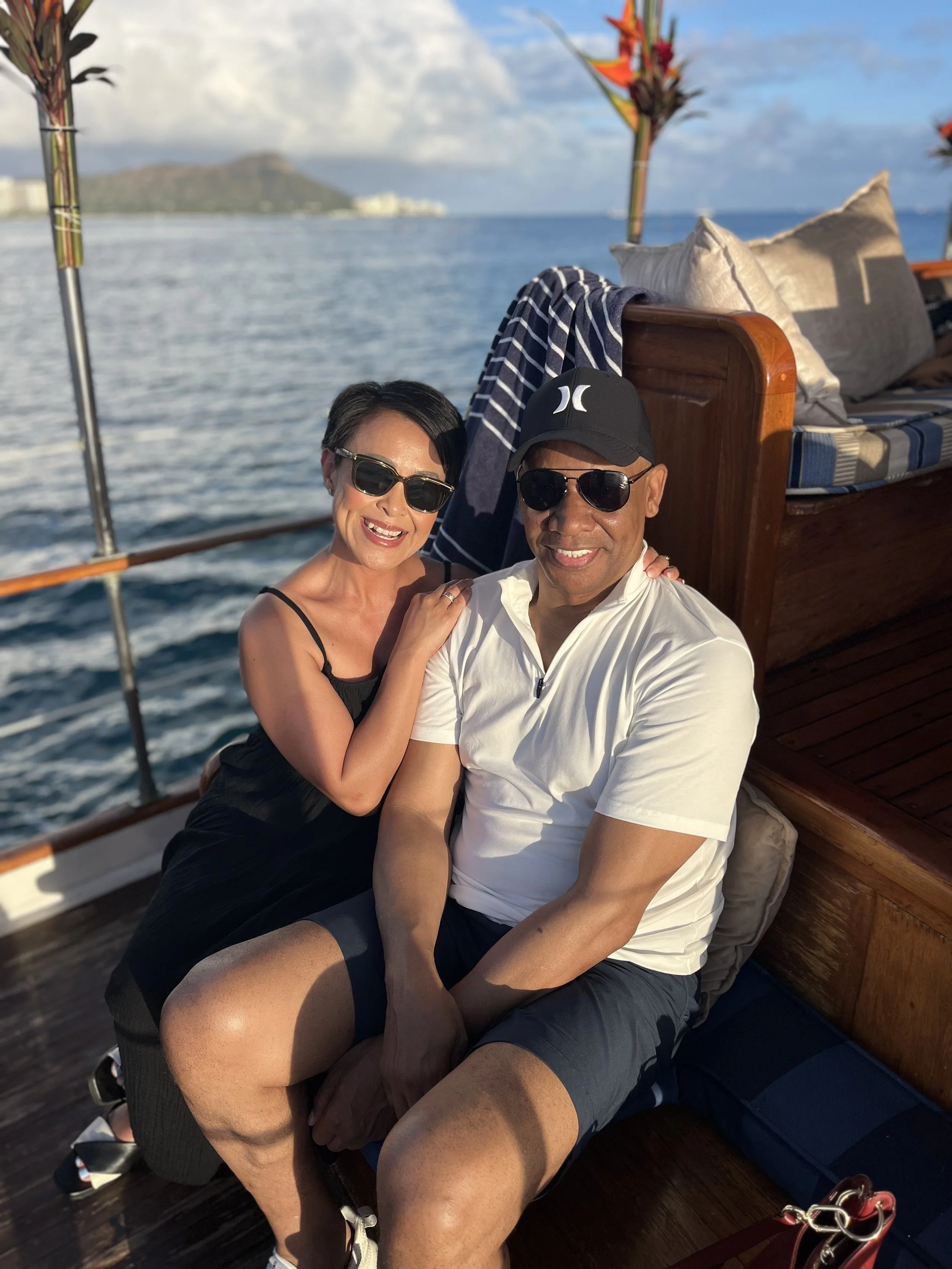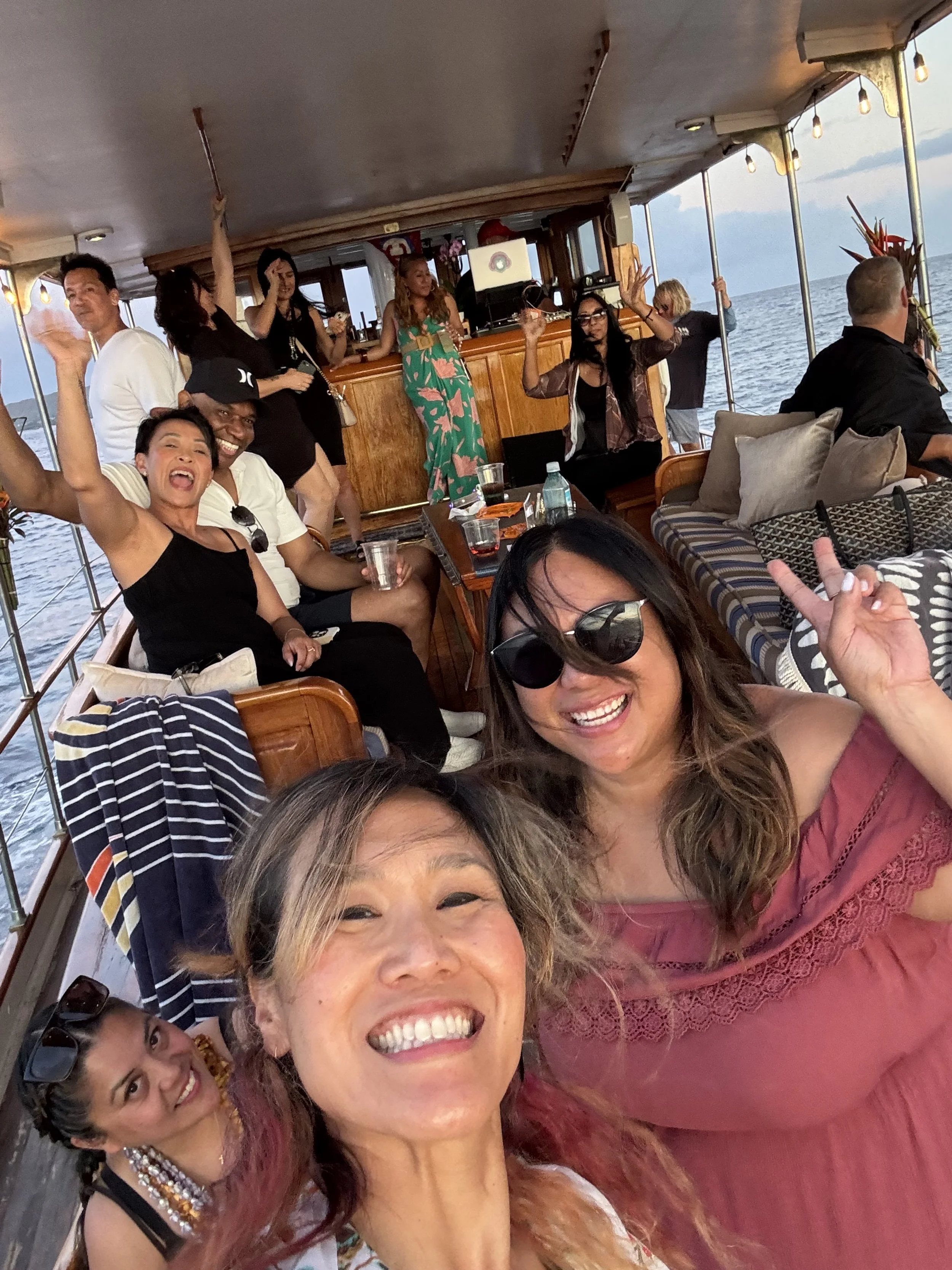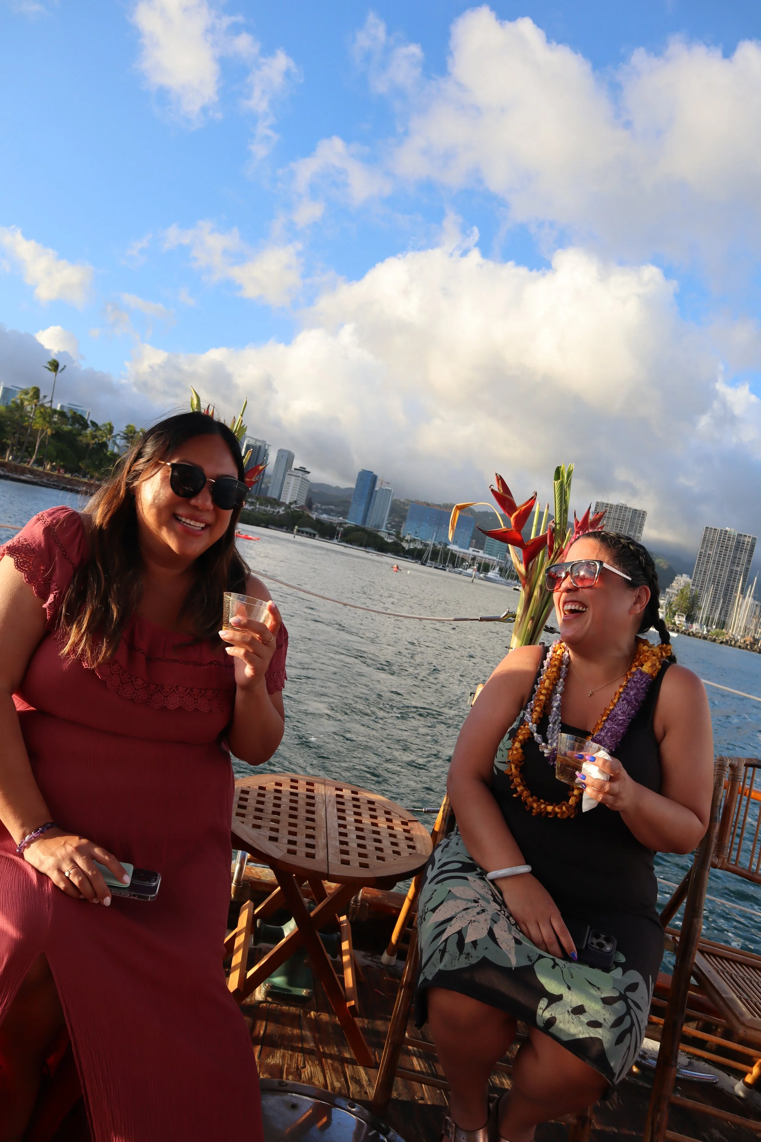 The gorgeous Vida Mia, Oahu’s premiere private yacht charter, enhanced with just a bit of LED twinkle lights, provided the perfect party space with the glistening Hawai’i horizon and mighty Diamond Head as its backdrop.